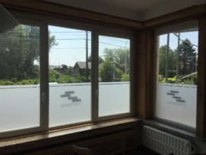 En étant appliqué à l’intérieur, le sablage est protégé des intempéries et du vandalisme, ce qui garantit sa durabilité. Il est également possible d’utiliser un vinyle sablé pour l’extérieur lorsque d’autres options ne sont pas possibles. Ce type de vinyle est conçu pour résister aux conditions climatiques tout en offrant une esthétique attrayante et une protection contre les regards indiscrets.