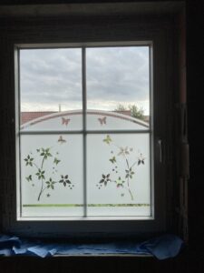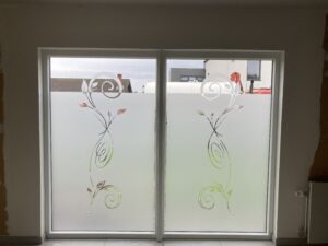 Le sablage en vinyle est une technique décorative qui utilise des vinyls adhésifs. Il est disponible sur en version transparente, colorée ou à motifs, pour occulter partiellement ou totalement des surfaces vitrées. Cette méthode permet de créer des designs personnalisés tout en préservant l’intimité.